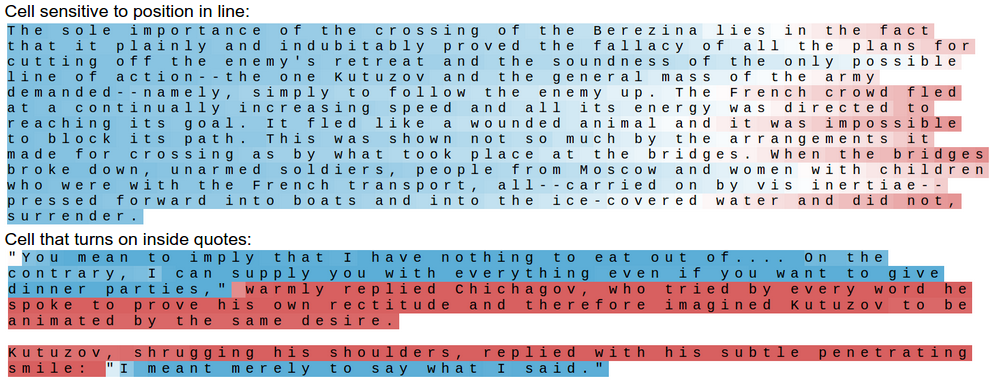 Sometimes, the LSTM cell state corresponds with features of the sequential data:
