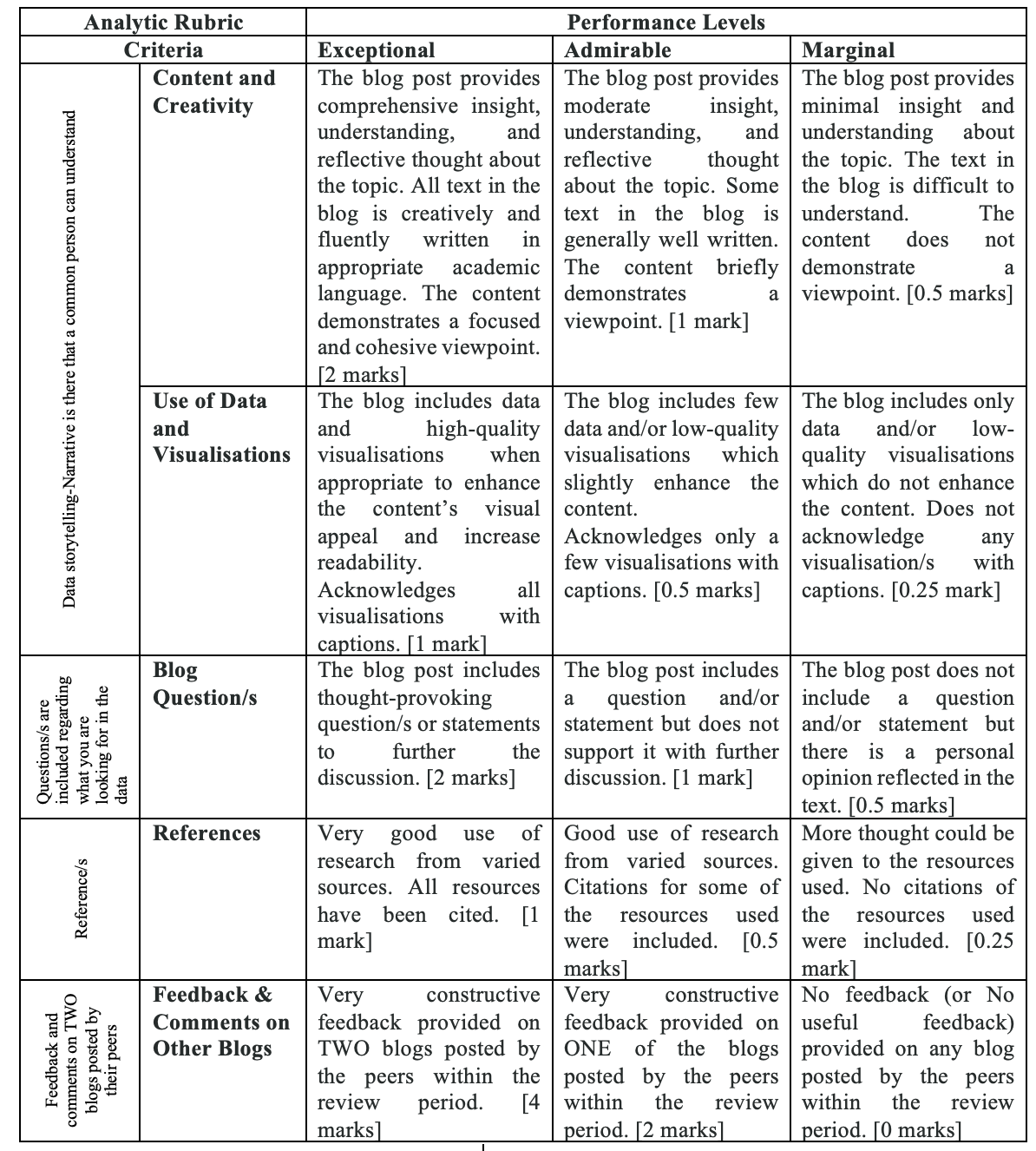 Tip for marking from a rubric: Work out consistent marks for each grade level, e.g., for a criterion out of 10:
