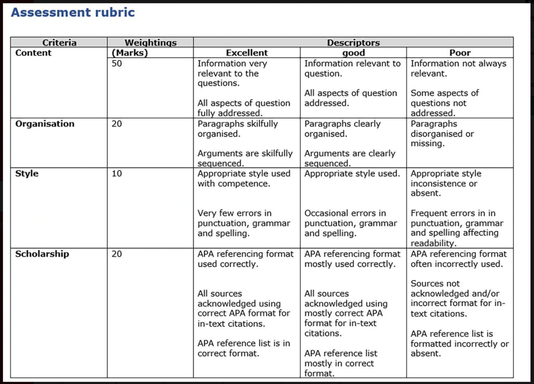 Question: Do you look at rubrics or marking criteria as a student? Do you know how to find them?