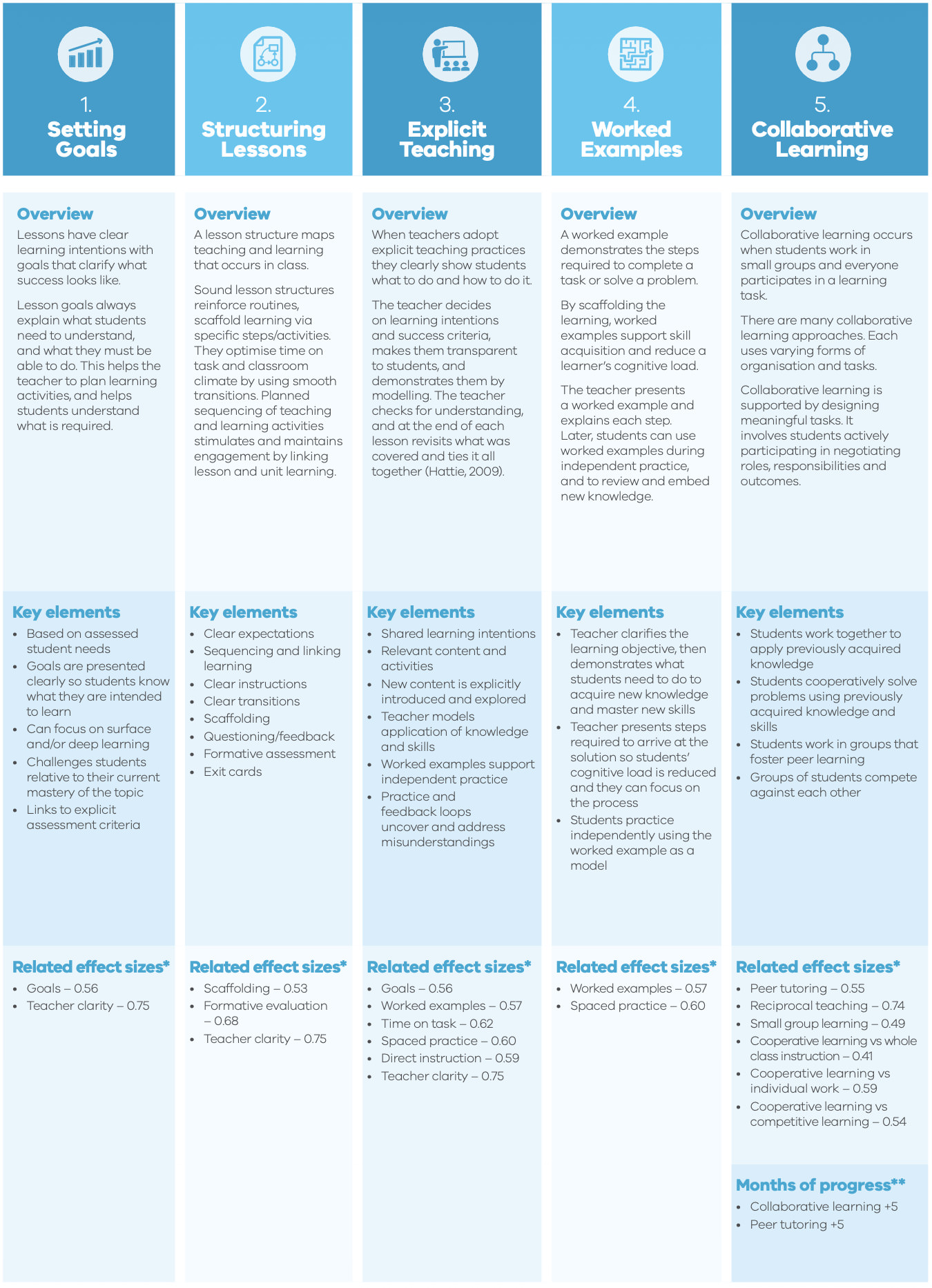 HITS summarises evidence-backed teaching strategies (e.g., from studies reported in Hattie, 2009)